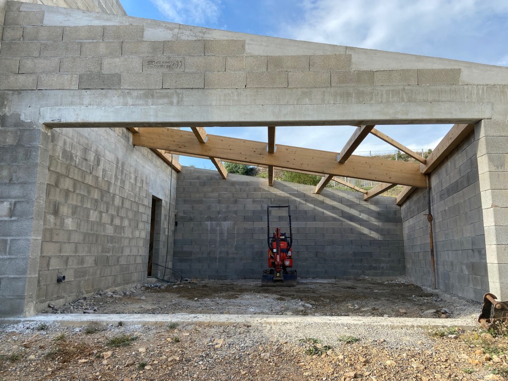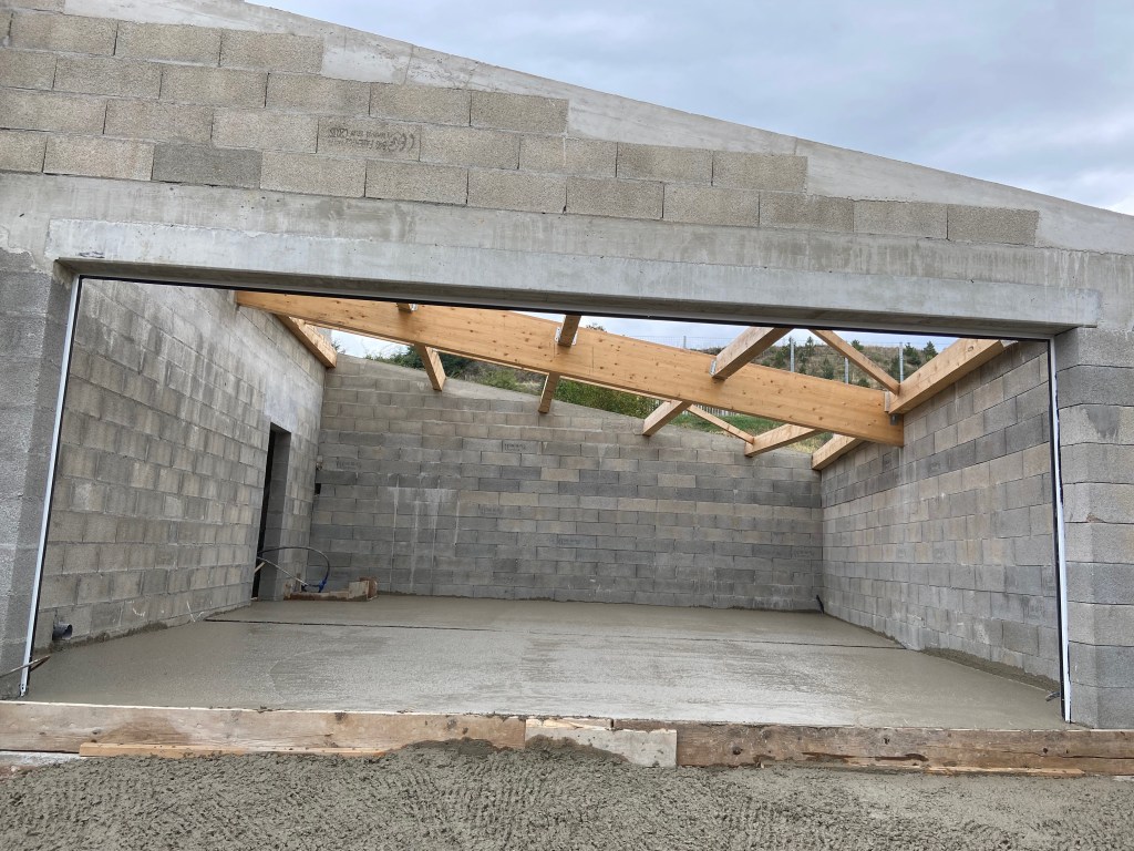 Création d’une dalle béton avec préparation du sol, ferraillage et coulage.