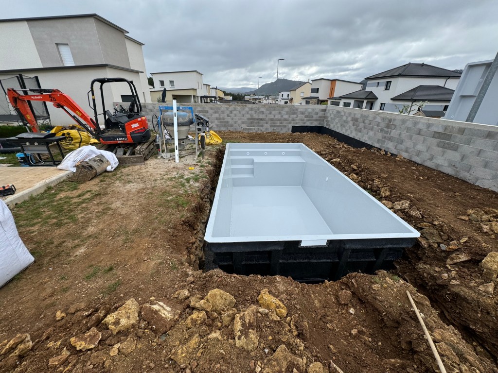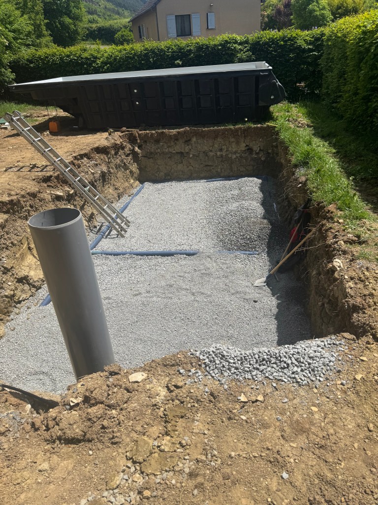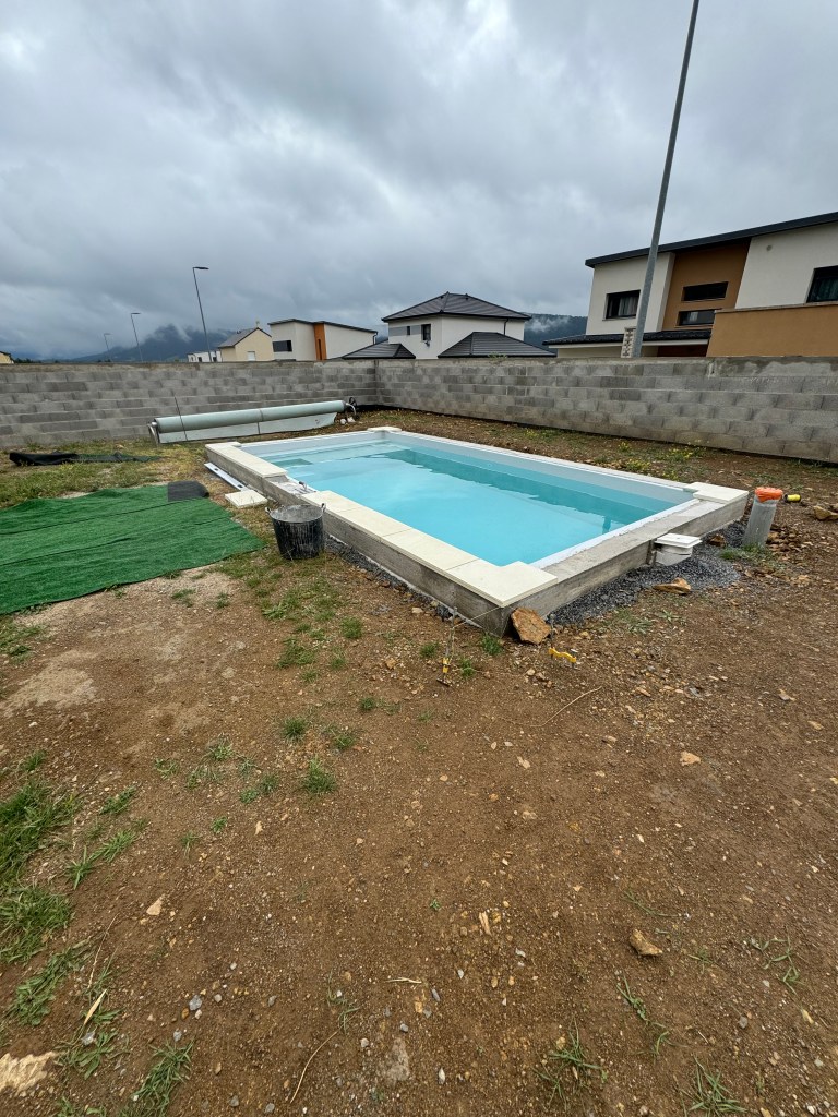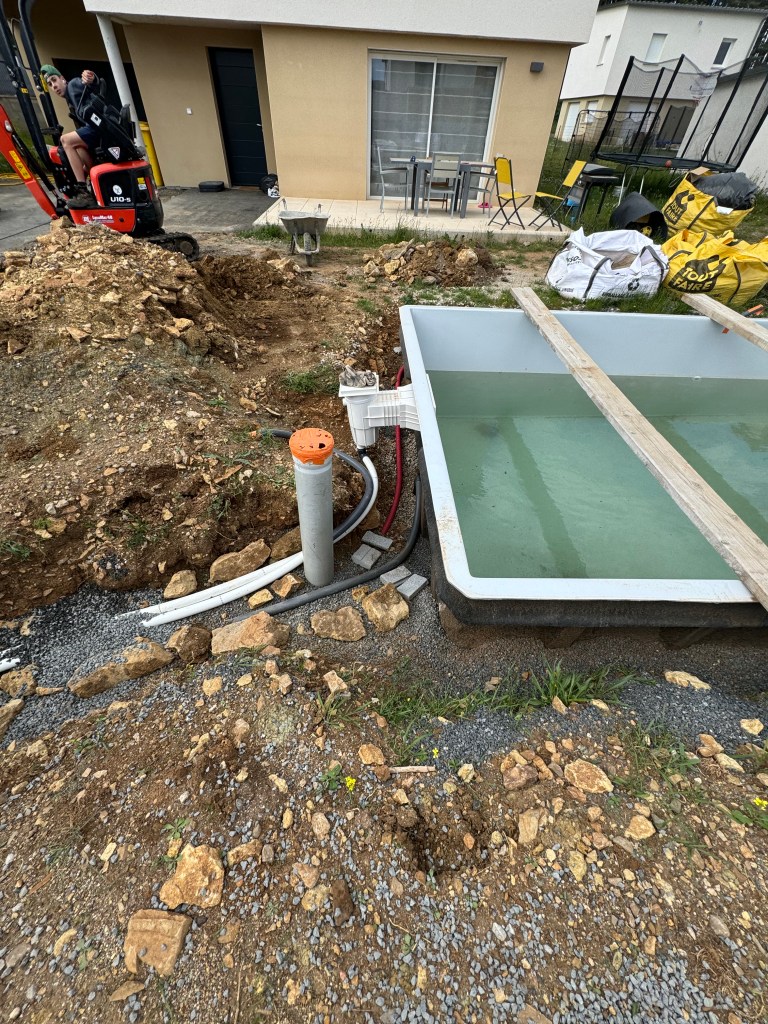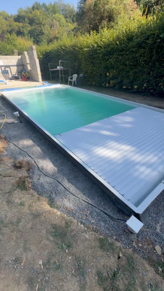 Pose et raccordement d’une coque de piscine avec volet roulant immergé
