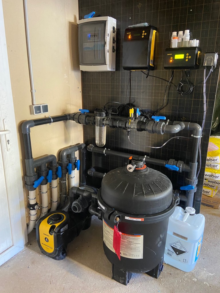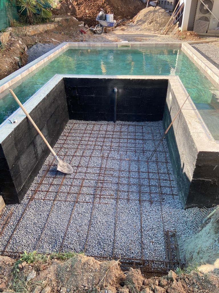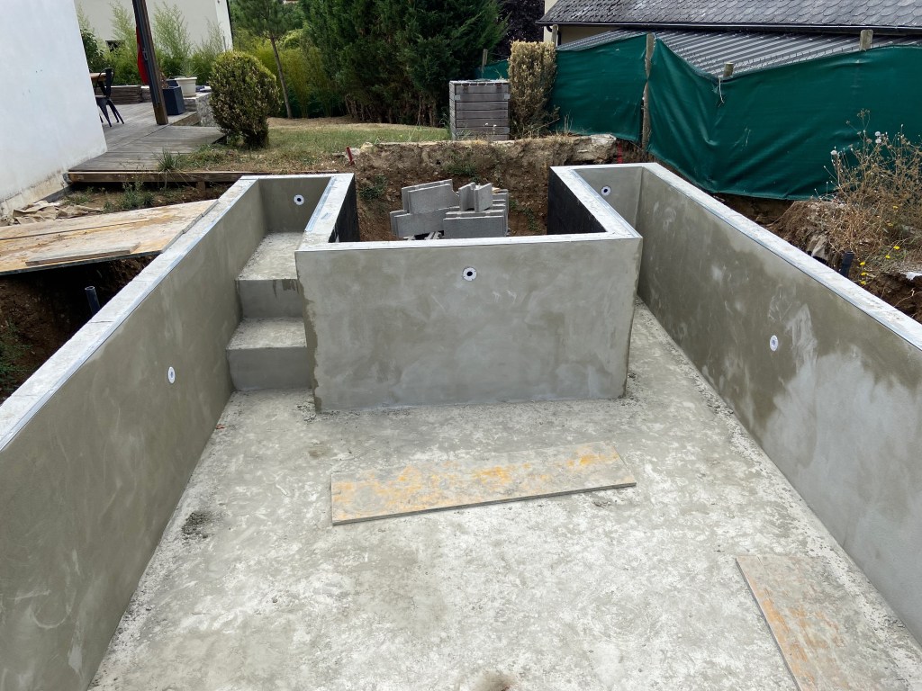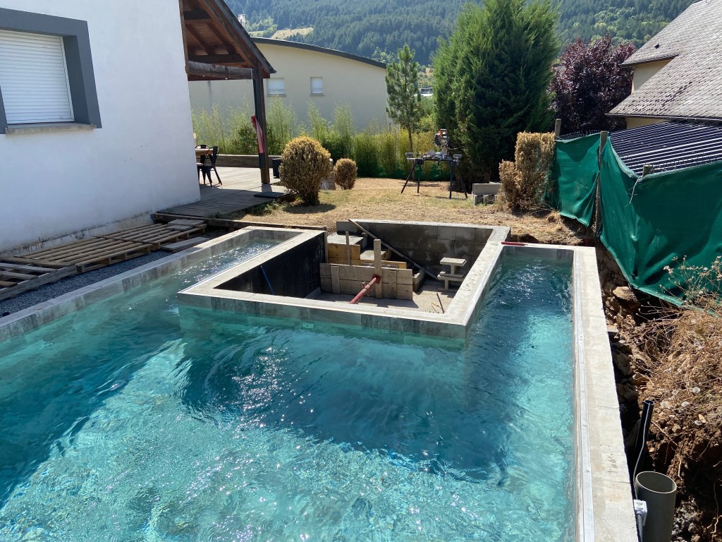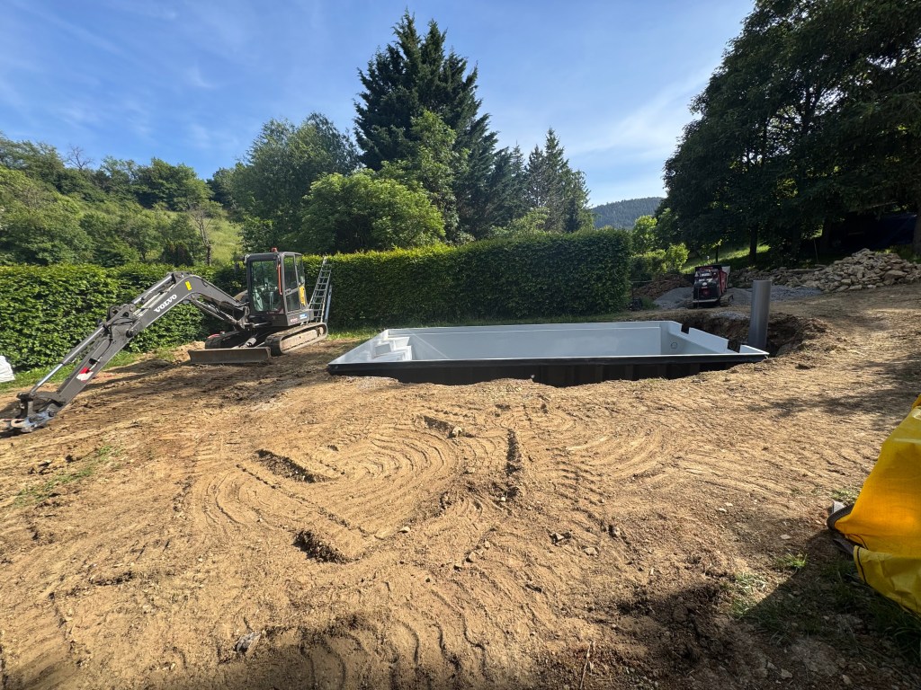 Pose et raccordement d’une coque de piscine avec volet roulant immergé