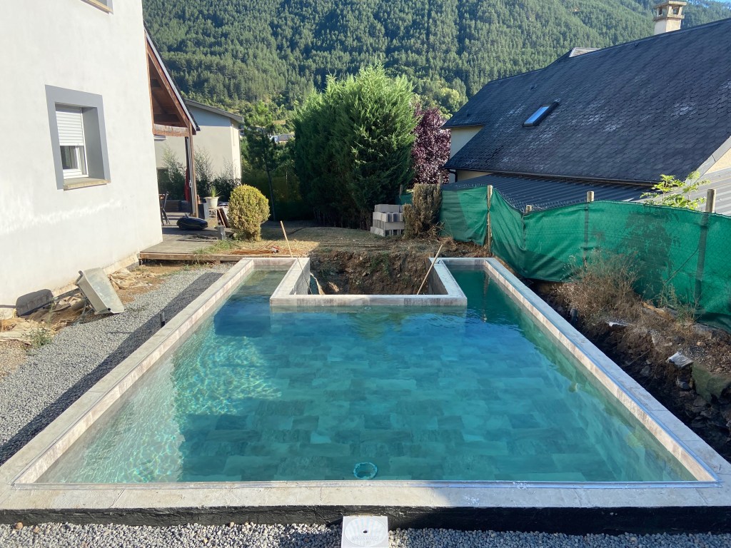Piscine creusée avec aménagement des plages